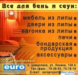 - все для бань и саун (мебель из липы, вагонка липа, бондарная продукция, печи, аксессуары, огнеупорные плиты минерит и т.п.)