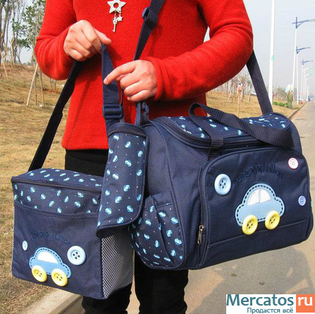 Красивая яркая расцветка (аппликация в виде машинки с пришитыми пуговицами) порадует маму и малыша. Вместительные удобные сумочки на молниях, много места для детских вещей и принадлежностей. Есть внутренние и внешние карманы для мелочей и документов.
