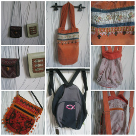 рюкзаки,сумочки через плечо, каждая по 100 рублей.