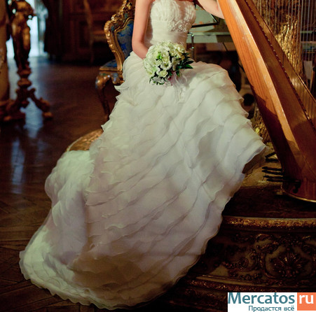 Свадебное платье приобретено в салоне Etra. В нем прошла только 2-х часовая фотосессия в гостинице. Не было прогулок по улице и мероприятия в ресторане. Размер 42-44, есть возможность ушить до 40-го размера. В подарок отдам фату (15000 руб.) и диадему (5000 руб.)