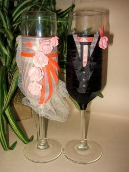 Бокалы для молодоженов и свадебные бутылки станут отличным дополнением вашего торжества.