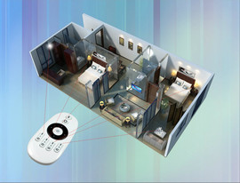 Комплект включает в себя 2 лампы и 1 пульт управления, работающий по радиоканалу на частоте 2,4 ГГц.