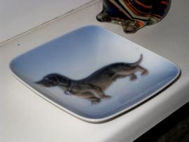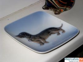 Декоративная тарелка, тарелка для булавок с рельефным изображением таксы, Royal Copenhagen №3665, Дания, 10,5х10,5 см. В отл. состоянии.