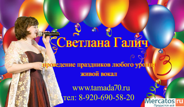 Профессиональная ведущая мероприятий и певица - Светлана Галич это настоящий отдых, незабываемое событие, новые эмоции, энергетическая подзарядка, выброс адреналина – целая терапия по внедрению позитивных настроений для Вас!