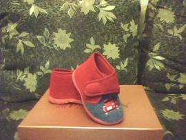 На резиновой подошве (материал типа утепленной фланели) на липучке абсолютно новые, 25 размера