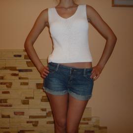 Топ белый трикотажный, крупной вязки, с оригинальной спинкой - распущенные нити. Одет несколько раз, состояние идеальное!