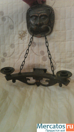4. Керамика. С двумя головами демона. Высота около 23 см. На три свечи. 9 тр.