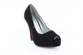 Превосходные закрытые туфли из искусственной замши. Подкладка серебристого цвета. Открытый носок. Маленькая платформа, каблук 11 см в размерах 32-35. Каблук 12 см в размерах 42-45.
