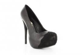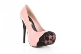 Красивые туфли из искусственной кожи и черного кружева с закругленным носком.Черная лакированная шпилька 12 см и 3 см внутренняя платформа.