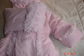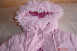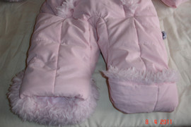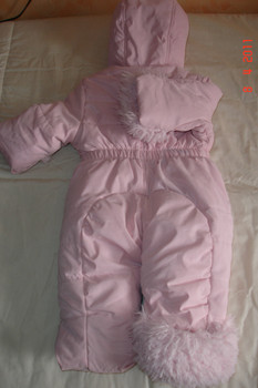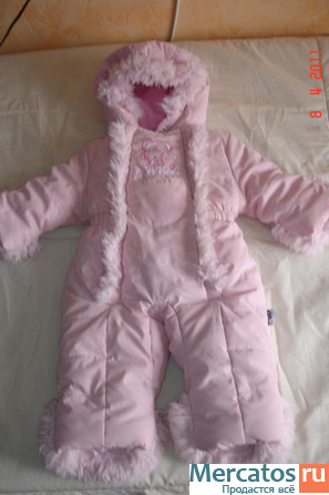 Комбинезон для девочки на рост 74.Очень удобно закрываются ручки и ножки(не нужны варежки и обувь).Температурный режим от минус 12 до плюс 5 градусов.В подарок - велюровая шапочка.