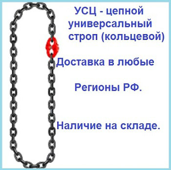 Цепной универсальный кольцевой строп, представляющий из себя замкнутый кольцевой отрезок цепи. Используется при строповке самых разнообразных грузов, особенности которых не позволяют применить строп с концевыми элементами, а требует строповки в обхват, например, трубы, круглые пачки металлических прутов, бревна и другой груз без мест крепления. Грузоподъёмность кольцевых строп от 2,20 до 30,2 т. Диаметр цепи от 6 до 22 мм. В нашей компании Вы всегда можете купить не только строп цепной универсальный кольцевой усц, но и стропы текстильные, канатные стропы, крановые стропы, ленточные стропы, стропы для манипулятора и др.