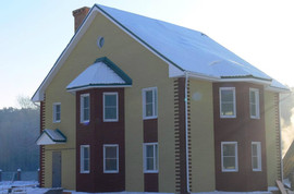 Система «Front'ON» является эффективно вентилируемой фасадной системой для утепления и облицовки вновь возводимых и реконструируемых зданий до 100 м по высоте. Система «Front'ON» состоит из малоформатных фасадных камней, которые укрепляются на ортогональную подконструкцию, состоящую из Z-образных и направляющих профилей. Камень производится из мраморной крошки, белого цемента, красящих добавок и обрабатывается водоотталкивающим составом. Профили производятся из стали, гальванизированной горячим способом. В промежутке между стеной и фасадным камнем располагается теплоизоляция, которая укладывается на Z-образный профиль. В случае неровности стены. необходимо применение консолей, которые позволяют компенсировать перепады до 60 мм. Конструкция направляющего профиля обеспечивает воздушный канал толщиной 15 мм. Z-образные профили крепятся к стене на расстоянии друг от друга 0,6 м максимально, но существуют строительные ситуации (угол здания, оконный, дверной проем), где это расстояние корректируется в меньшую сторону. Направляющие профили крепятся к Z-образным профилям на расстоянии друг от друга 0,3 м максимально, но существуют строительные ситуации (оконный, дверной проем), где это расстояние корректируется в меньшую сторону. Частота крепления консолей — в соответствии со статическим расчетом.