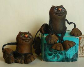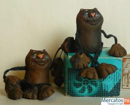 Экологически чистые куклы из природных материалов (керамика, льняной шнур или кожаные ремешки). Авторские единичные куклы на заказ или оптом (серией). Выполнены по авторской технологии со свободными гибкими лапками и хвостом-противовесом, что позволяет "усадить" кукол практически на любую полочку (дверку, ветку).