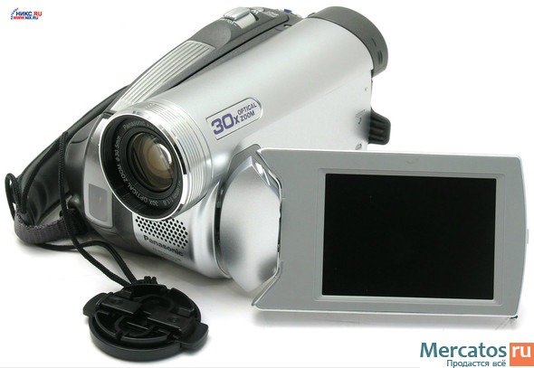 Видеокамера формата DV начального уровня с 30-кратным трансфокатором. ДИЗАЙН: Корпус из серебристого и серого пластика выполнен в традиционном стиле. Камера компактна и весит всего 410 граммов. В руке сидит достаточно удобно. Кассетоприемник открывается вправо, что позволяет, при работе со штатива, легко заменять кассеты, не снимая камеры.