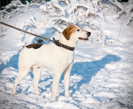 Виски – молодой красивый пес, среднего размера (в холке около 50-53см), возраст около 2х лет. Виски добрый, послушный, любит общение с людьми, к собакам проявляет интерес, не агрессивен. Любит гулять, но на прогулках хочет свободы – сказывается зов охотничьей крови. Был найден с ошейником, видимо, бывший домашний, но к поводку относится настороженно. Тянется к людям, в приюте ему очень не хватает внимания и ласки. Подойдет в качестве надежного друга-компаньона в семью.