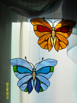 Выполню на заказ и продаю готовые витражи в технике Тиффани(панно, часы, светильники, салфетницы, вставки в гипсо-картонные перегородки, в двери, дверцы в мебели)Цена работы зависит от сложности, размера и срочности.