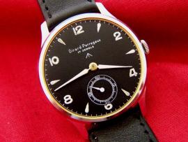 * Циферблат - Супер состояние; белые покрытые люминесцентным составом арабские цифры, метки и стрелки; чёрный фон; маленький секундный циферблат на позиции 6 часов; Подписан ниже 12 часов - Girard-Perregaux, 17 JEWELS.