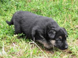 Щенки черного и чепрачного окраса, от рабочих перспективных собак, победителей монопородных выставок, с документами РКФ, клеймены, крепкие, здоровые, привиты по возрасту, устойчивая психика. Детям 1.5 месяца. На фото мама и дети в возрасте 4 недель