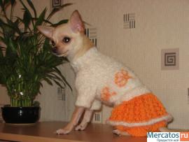 Вязаная одежда для декоративных пород собак:чихуахуа.той-терьер,йоркширский терьер,такса в ниличии и на заказ. Курточки,комбинезоны,свитера,платья,безрукавки,пончо.Большой выбор одежды.Исполнение заказа от 2-4 дней.