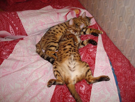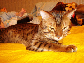 Молодой и сильный кот-бенгалец (красивый глиттеринг, длинное, мускулистое тело и морда соблазнителя) ждёт кошек, чтобы завести с ними детей. Развязан, имеет все неоходимые вакцинации, хорошую родословную, кошек примет с прививками. Вязка на территории мужчины, в 50 км от МКАД, на юге Подмосковья. Берёт недорого, 5000 руб.