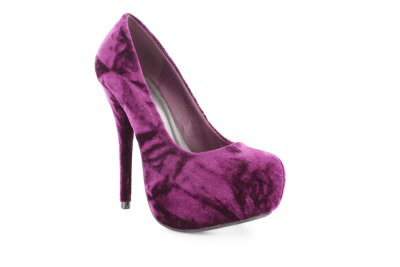 Бархатные туфли фиолетового цвета с закругленным кончиком. Шпилька 12 см, подкладка в тон, внутренняя платформа 3 см. Маленькие размеры.