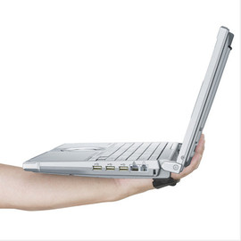 Удобный фиксатор ладони позволяет надежно удерживать одной рукой ноутбук под любым углом.