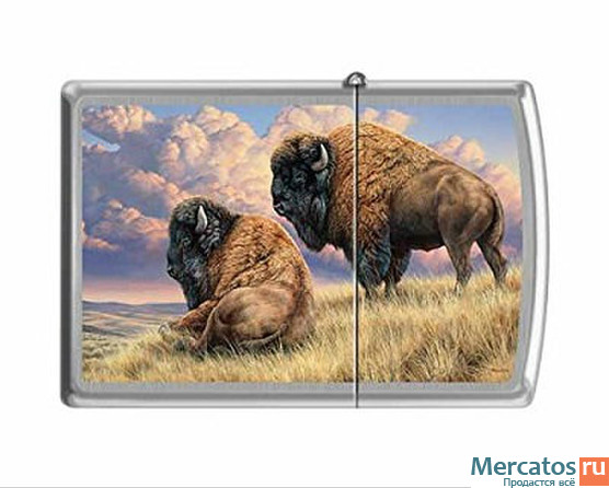 Зажигалка Zippo хром,полноцветный рисунок американских зубров