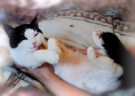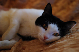 Молоденькая кошечка окраса "коровка" в добрые руки. Ласковая, мурчливая девочка с непреодолимой тягой к лежанию на коленях. Кошечке год, привита, стерилизована, к лотку относится с обожанием.