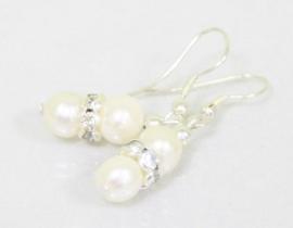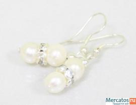 Речной жемчуг белый, стразы, биж. сплав.