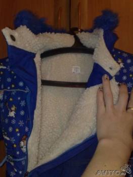 зимний комбинезон на меховом подкладе,цвет-синий с рисунком,капюшон с искусственным мехом, б/у, в хорошем состоянии, рост 116. возможен торг.