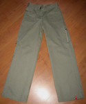 | 100% хлопок, 44-46 размер, рост 170, чуть заниженная талия, талия 72 см, будра 100 см, прямые, достаточно широкие по всей длине, новые, одевала 1 раз, куплены в "Мега Химки" магазин Esprint. |
