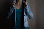 Джинсовый пиджак-куртка на больших пуговицах, с карманами на молнии