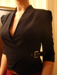 | Элегантный чёрный пиджачок из натуральной хлопковой ткани с пряжкой на боку, фирма Definess, отлично сидит на фигуре, одевала пару раз, состояние отличное |