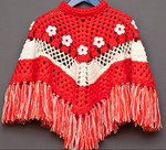 | Пончо связано крючком.Состав:48% шерсть, 52% акрил.Длина изделия 34см + кисти 14см.