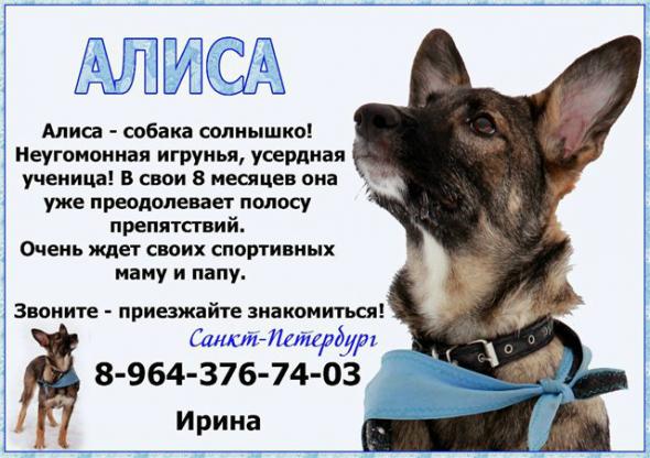 | Знакомьтесь - это Алиса! Очаровательное 8-ти месячное чудо (ок. 40 см. в холке) готово переехать к вам в дом, чтобы... |