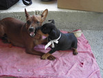 | Продаются щенки цвергпинчера.Документы РКФ, клеймо, прививки. Окрас рыжий и чп, Девочки 1.5 месяцев, от титулованных родителей. Перспективны для выставок и размножения. |