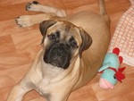 | Продается щенок бульмастифа, сука 2мес, прививки по возрасту, клеймо, документы РКФ, родители чемпионы. собака без недостатков, единственная в помете крупная. |