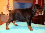 | Продается щенок добермана.Черно-подпалая девочка. Дата рождения 21.04.2011г. С отличной родословной от титулованных... |