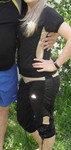 | Костюм для фитнеса из эластичной ткани- отличное состояние, удобен во время занятий, брючки двусторонние, классно смотрится, на рост 180-брюки коротковаты |