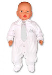 | Комбинезон из белого велюра, декоративный элемент - съемный галстук из атласа в горошек и вышивка, имитирующая платочек в кармашке.