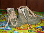 | ботиночки р-р 22,состояние хорошее,носили осенью,когда еще не ходили,так,что практически новые.нат.кожа,внутри на байке. |