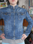 | Молодёжная джинсовка,на молнии,слегка приталенная. Размер 44,на рукавах пуговицы-болты. Состояние новой вещи,б-у несколько раз. |