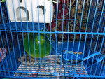 | Клетка для средних попугаев. Высота 65см, диаметр 38см, расстояние между прутьями 1см.