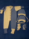 В набор для деток от 1 месяца до 5 месяцев входит: комбинезон, две шапочки разного размера,... |
