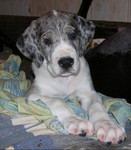 | Продаю щенка немецкого дога серомраморного окраса, девочку в возрасте три месяца с родословной и прививками. |