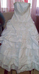 | Очень красивое свадебное платье с розочками, пышное. Покупала в ателье. К нему прилагается фота и перчатки. Размер 40-42. На шнуровке, регулируется на рост 160 |