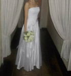 | Продам свадебное платье,р.42-46,белое,сзади корсет,б/у 1раз-в идеальном состоянии-после химчистки.Перчатки,обруч,диадему-... |