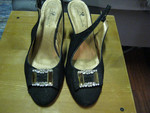 | удобный каблучок,спереди пряжка. коже заменитель. пяточка открыта.размер 37 |