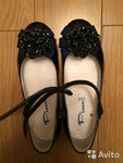 | Темно синие туфли с красивым украшением на носу 34-35 размер на девочку. На фото затемнение - украшение красиво переливаются... |